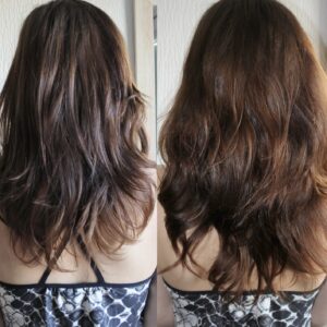 AprĂšs quinze jours d’utilisation du Masque Capillaire Brillance et Douceur, je vois dĂ©jĂ un changement au niveau de la brillance de mes cheveux. De plus, ils ont retrouvĂ© leur souplesse. Je prĂ©cise que j’ai les cheveux trĂšs courts et fins.